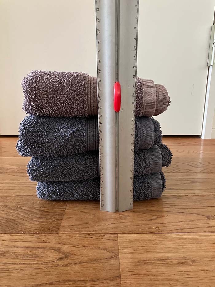たたんで4枚重ねると25㎝ほどの高さになります。これでどれくらい肉厚か伝わるかと思います。